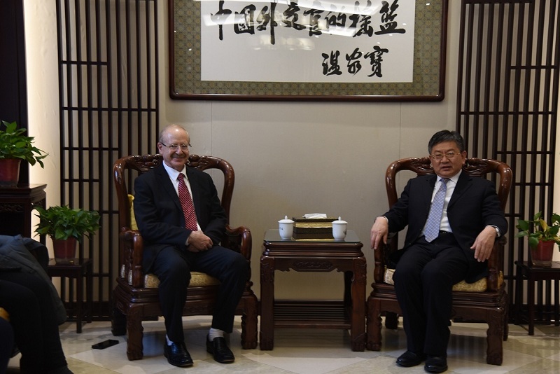 1月4日,外交学院院长兼中国外交培训学院院长徐坚会见来访的巴林驻华大使谢胡(Dr. Mohamed Ghassan Mohamed Adnan Shaikho)一行,培训学院教务部主任高明、外交学院外事办公室副主任曲丹等参加。